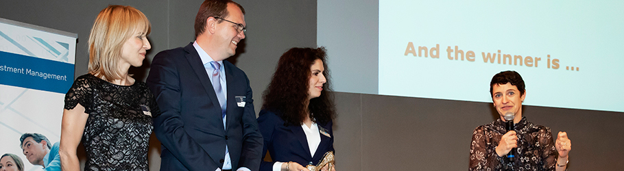 Nadat Nicole alle beoordelingen met de zaal had doorgenomen, sprak zij het verlossende woord: de Gouden Pump Award 2019 is gewonnen door NN Investment Partners.